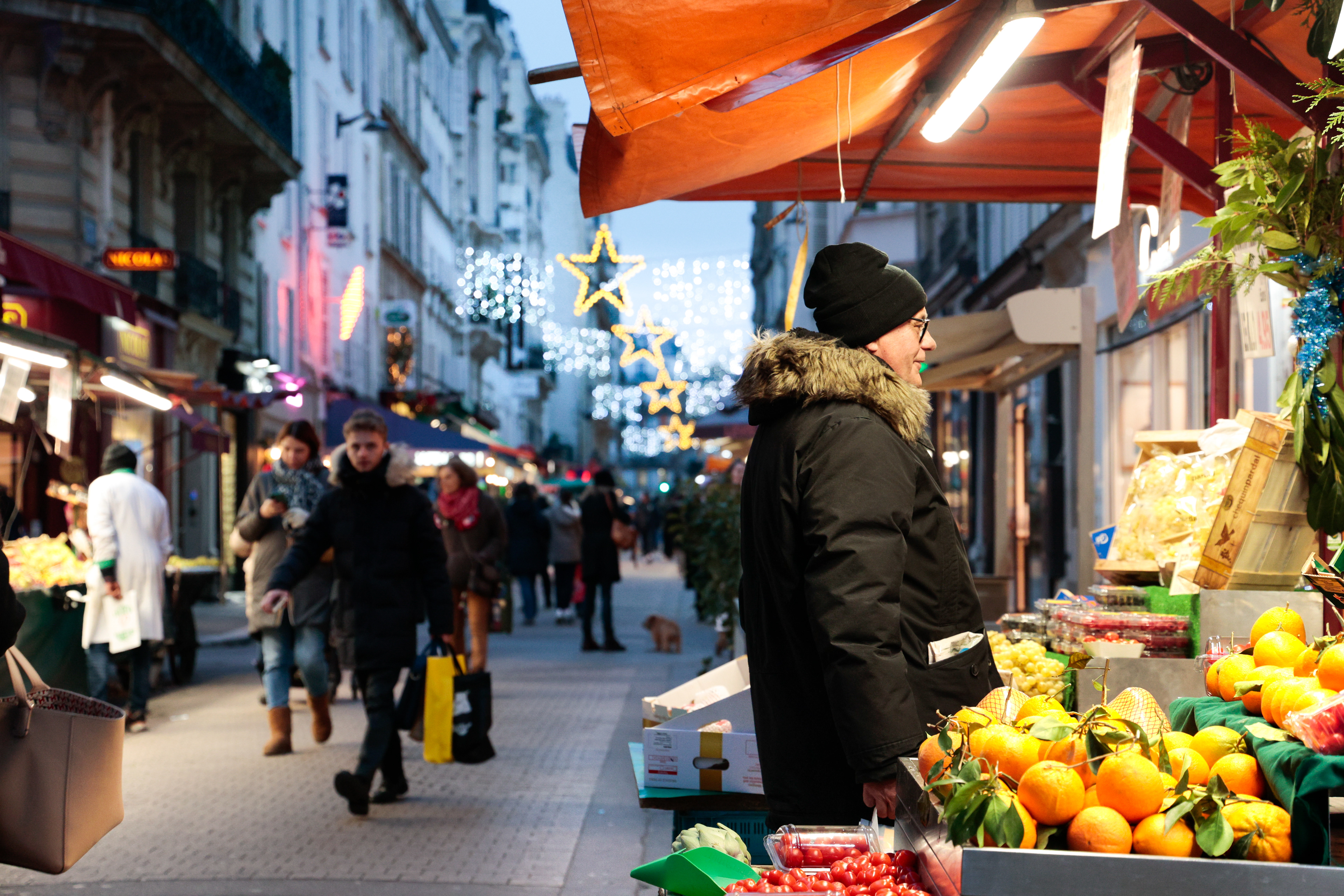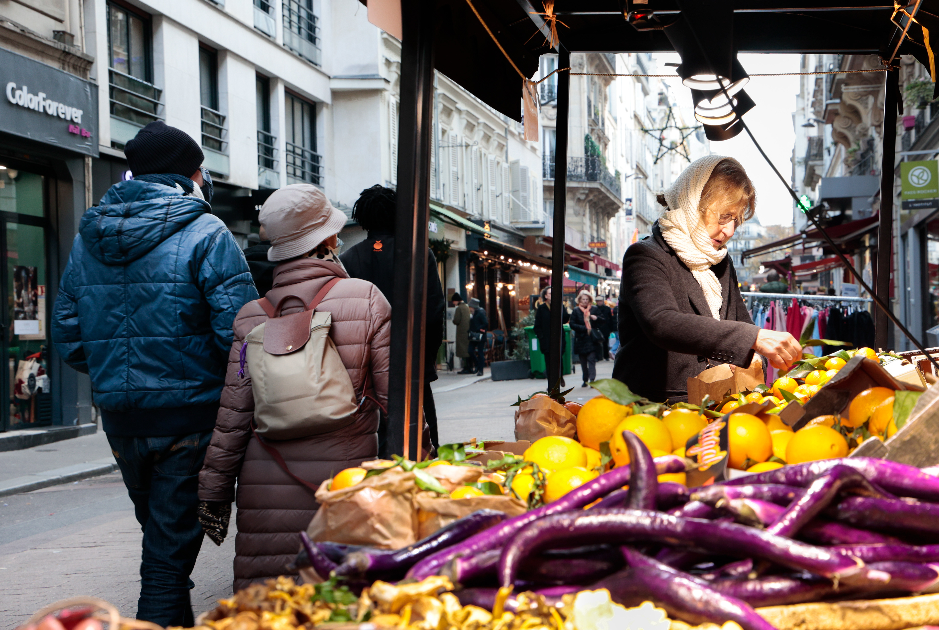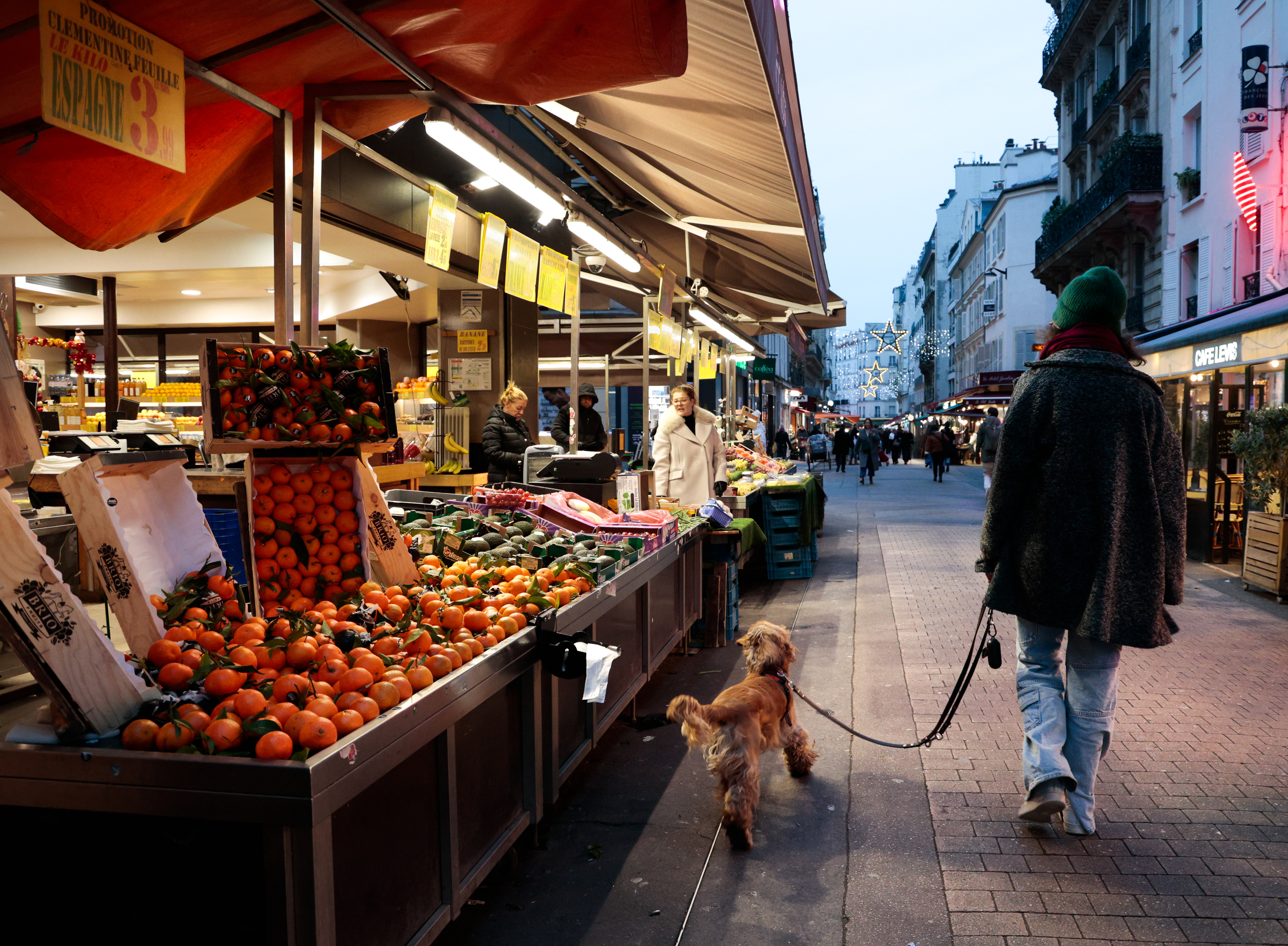 Illustration de la rue de Lévis (quartier des Batignolles, 17ème), pour la rubrique Immobilier "Le Parisien". Une rue attrayante où les habitants se mêlent aux passants, aux commerçants dans la bonne humeur générale. De belles rencontres.